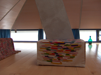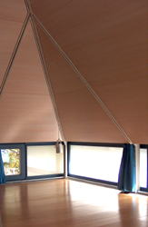 definiert den zeltartigen Innenraum. Alle Oberflächen und Einbaumöbel